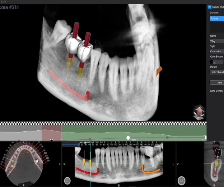 Infatti, una volta acquisite le immagini radiografiche del cavo orale del paziente e di tutte le altre strutture, queste vengono caricate sul software ed elaborate. Un motore di intelligenza artificiale permette al dentista di tracciare panoramiche e sezioni del modello osseo, misurarne la densità, studiare le immagini sia in formato bidimensionale che tridimensionale e decidere posizionamento e inclinazione del perno di ancoraggio. Insomma, in poche parole, simulare tutto l’intervento.